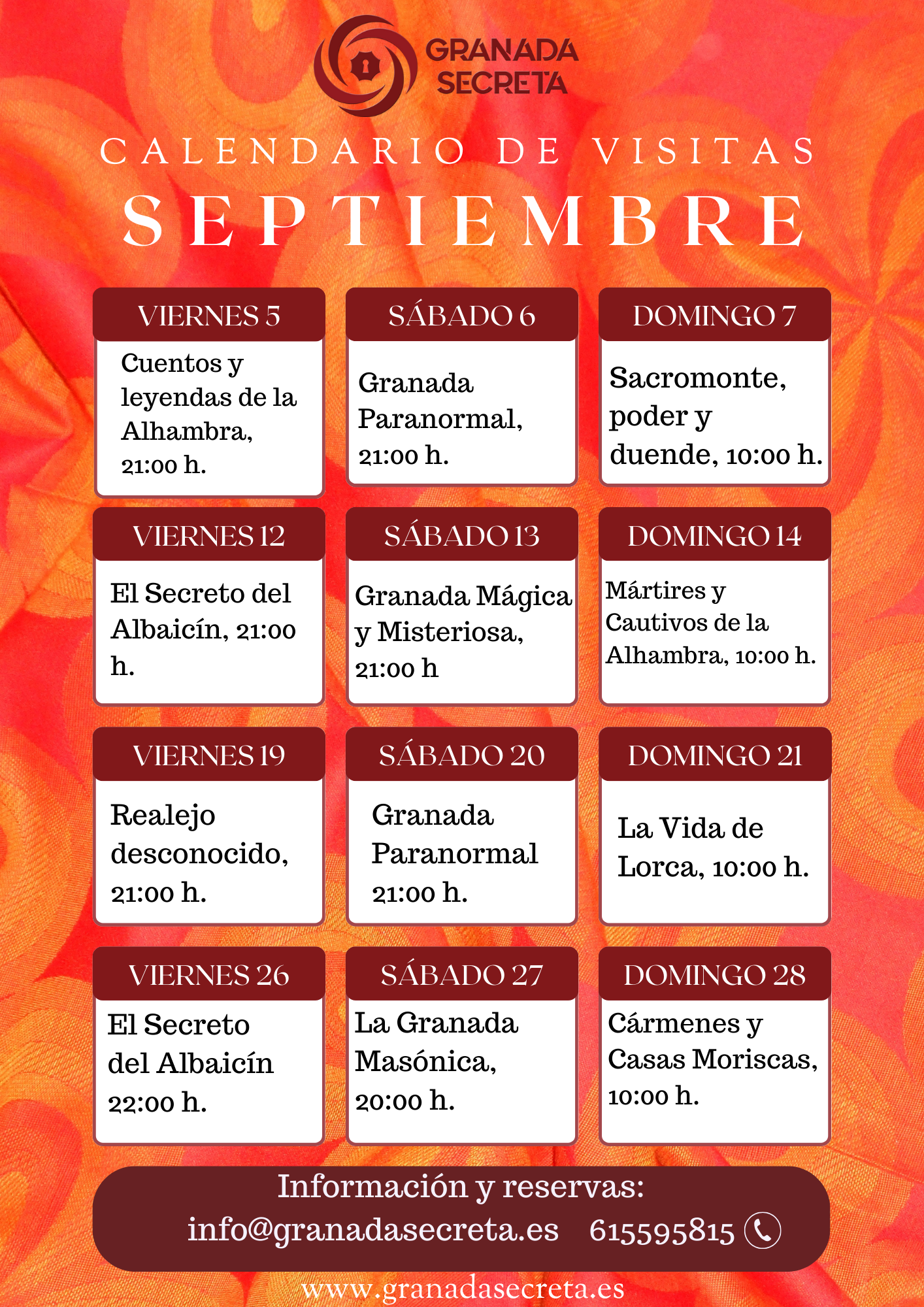 Descubre Granada Secreta este otoño Septiembre llega cargado de propuestas culturales para descubrir Granada como nunca antes. En Granada Secreta ya tenemos preparado el calendario completo de visitas guiadas para este mes, con recorridos únicos que combinan historia, misterio y patrimonio. Nuestros tours son una invitación a mirar la ciudad desde otra perspectiva: las calles … Leer más