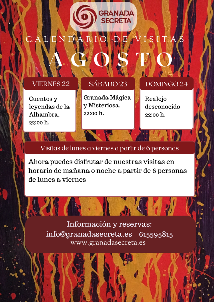¿Buscas una forma diferente de conocer Granada este verano? En Granada Secreta te proponemos un agosto lleno de historia, misterio y rincones sorprendentes. Te invitamos a vivir la ciudad como nunca antes, con nuestras visitas guiadas especiales pensadas para quienes quieren ir más allá de los lugares comunes.